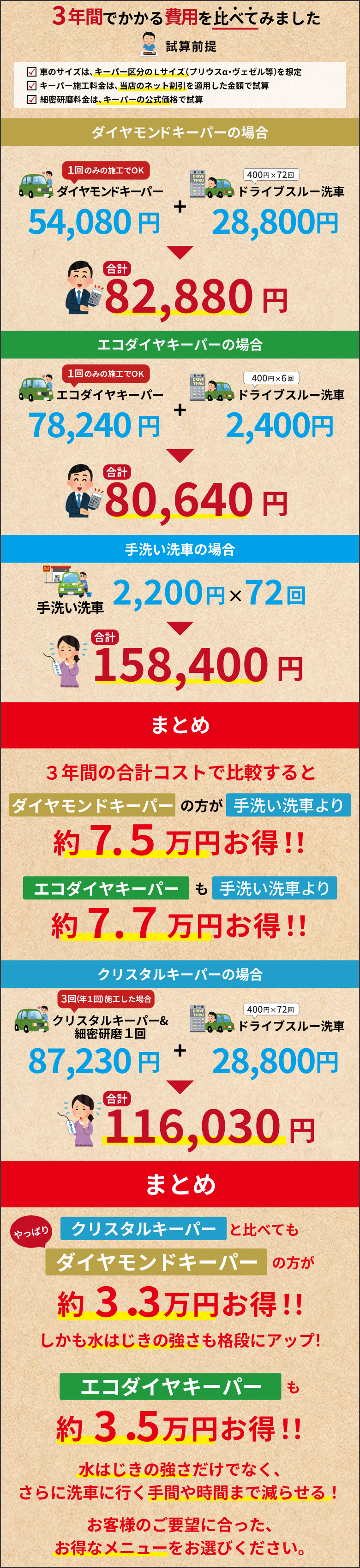 カーディーラーや車販売店のコーティング料金より断然お得!
