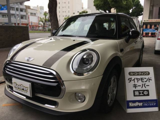 | 担当者コメント | ダイヤモンドキーパー 施工車です。 今回の施工はBMW MINIのダイヤモンドキーパーです! 気にされていました水垢もしっかり取り除いてから ガラスコーティングを施工させて頂きました! コーティングと一緒にフッ素ガラス撥水 ホイルコーティングも施工させて頂きましたので ボディの保護はしっかりできております! 1か月の点検洗いのご来店お待ちしています! |